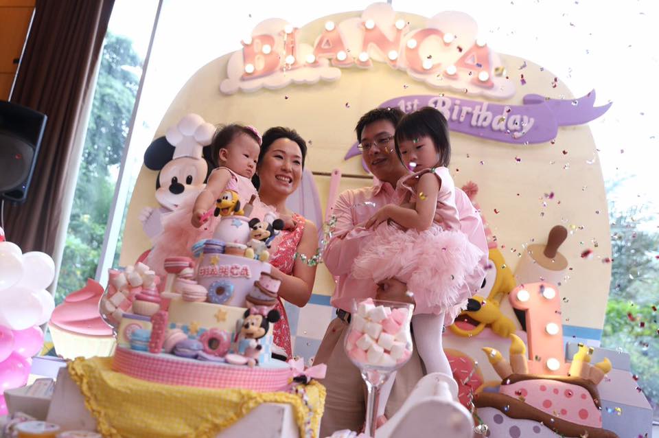 除此之外,還有Q版的米奇米妮佈置,雖然表面上是寶貝孩子的周歲派對,但配合這麼夢幻的氛圍,媽媽藉由派對名義扮個公主也是完全不過份啦!(咦?這個派對根本是媽媽們的滿滿私心吧)