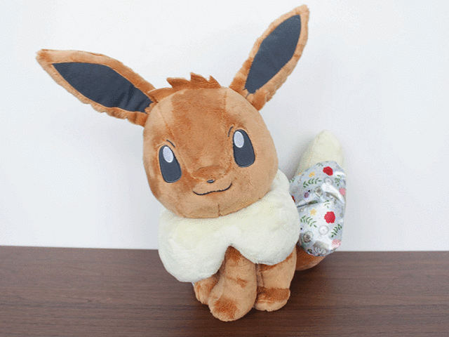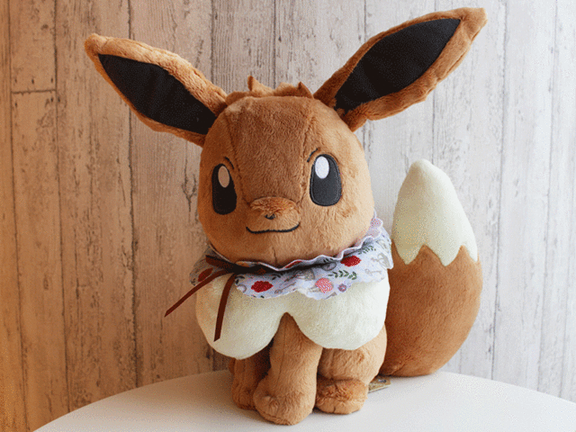 妞編輯一看到這隻伊布娃娃就先尖叫~(好可愛)脖子上還繫著花邊領子,打扮成這樣去參加華麗大賽一定會得名!