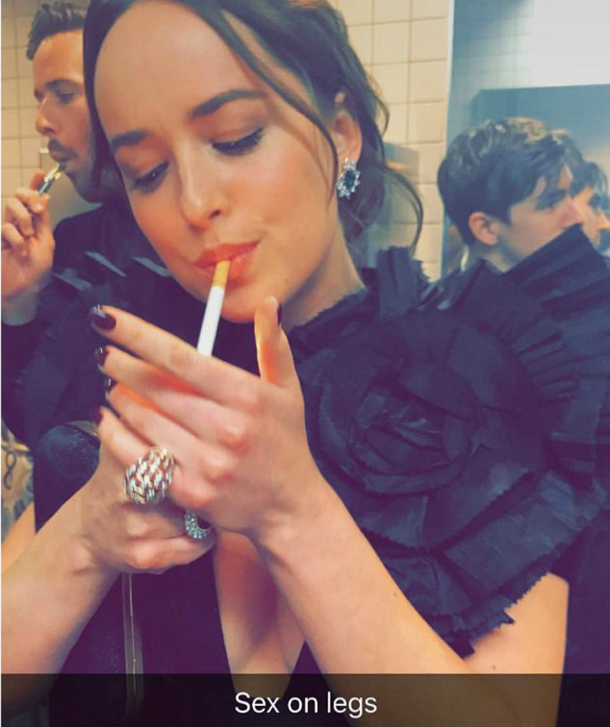 不只達柯塔和貝拉,還包括了Rami Malek、Marc Jacobs、Courtney Love和Frances Bean Cobain等眾多明星們,全都躲到廁所玩自拍,這自拍玩一玩還不夠,大家集合在一起抽煙,過程還被Rita Ora拍下來,直接Snapchat放送全世界!倒不是說不能抽煙,是因為紐約已在2003年,由前市長Michael Bloomberg明文規定,任何餐廳、酒吧等只要是室內,都全面禁止吸菸啊!(妞編輯補充:爾後條文更衍生到公園與海灘同樣禁菸)