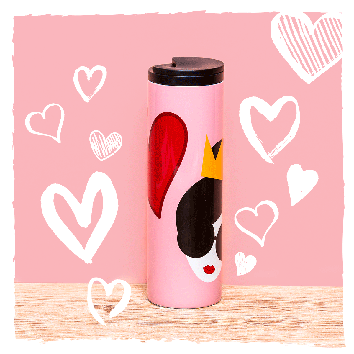 在杯款部分,因為這次正好遇到了情人節,所以特別設計有別以往的黑白兩色,融入了粉色的甜蜜氛圍,摩登大墨鏡與俏麗紅唇女孩圖像也很吸睛,既時尚又帶有復古感好好看吶~