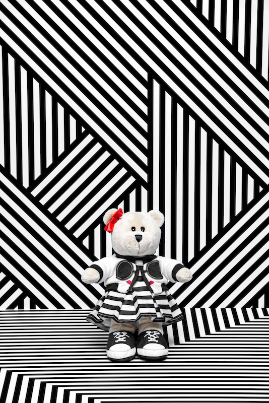 另外A + O時尚熊寶寶則是以品牌黑白的摩登外套為主,搭配俏麗條紋蓬裙與帥氣的運動風休閒鞋,展現中性可愛風。