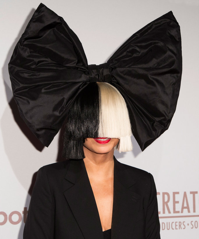 我的老天鵝啊!這位太太是誰啊?是芮妮齊薇格又去整形了嗎(誤)她竟然是唱紅〈寂寞水晶燈〉的澳洲女歌手Sia!(她是Sia?她是Sia)(跑到頂樓吶喊)Sia在歌迷心目中,就是要有黑白蝴蝶結假髮才對勁啊!因為拿下假髮的她實在太...太太太沒有殺氣了啦!