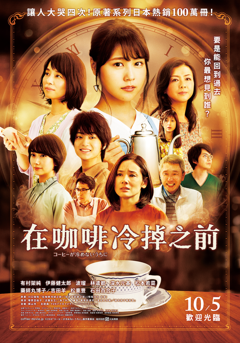 《在咖啡冷掉之前》改編同名小說,劇情描述在城市中有一間咖啡館,走進去時若坐在某個特定位置上時,能獲得一杯熱咖啡的時間,讓你回到生命中最想重溫的一刻,但這間咖啡廳對於如何回到過去有嚴格的規定,無法讓你像擁有一台時光機般,任意穿梭在時光之中。