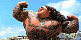 雖然這不是迪士尼第一次拍攝大洋洲原住民的故事,也不是第一次應用圖騰、刺青相關的題材,但這次的處理手法卻相當創新!像毛伊身上充滿了大大小小的刺青,每個刺青都代表了一個故事,而他身上的「小毛伊」刺青就像有生命一樣,穿梭在各個刺青場景中,甚至時不時與他互動,彷彿他腦袋裡的天使一樣,在必要時提醒他做對的事!