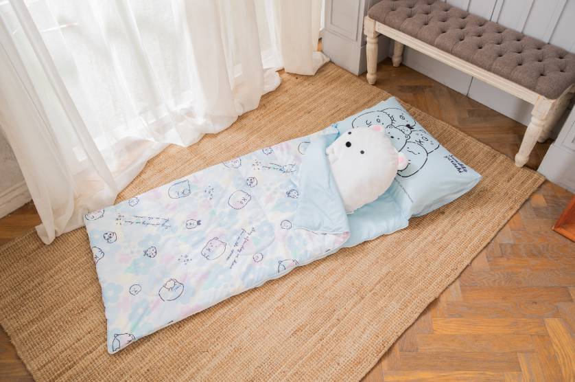 雙開拉鍊式睡袋設計,攤開後可當作棉被使用,還能塞入小枕頭睡起來更舒適,很適合小朋友帶到學校午休使用。限量5000個,加價購NT.799
