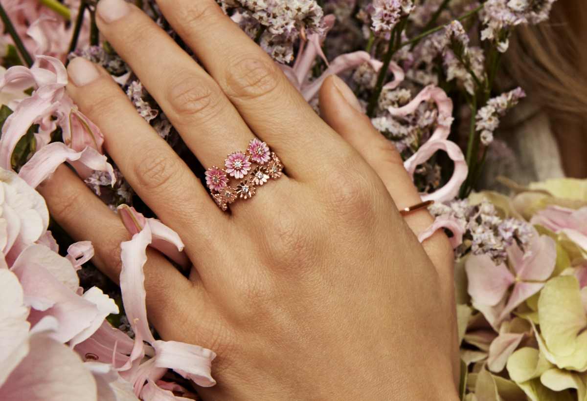 Pandora Rose 柔粉小雛菊琺瑯串飾 NT$2,480、Pandora Rose 柔粉花園鏤空琺瑯串飾 NT$2,080、Pandora Rose 柔粉小雛菊琺瑯吊飾 NT$2,480、Pandora Rose 柔粉小雛菊淡粉鋯石串飾 NT$3,980、Pandora Rose 小雛菊花園鋯石戒指 NT$3,280、Pandora 柔粉小雛菊琺瑯戒指 NT$3,680