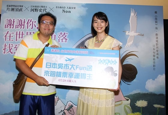 被問起配音的困難度,Non說雖然自己來自兵庫縣,大約是廣島隔壁的隔壁鄰居,但片中的方言實在不好學,花了非常多時間練習。電影背景設定在廣島附近的吳市,片商特別安排Non現場親手抽出一名超級幸運兒送出飛往吳市的機票,獲得大禮的觀眾激動衝上台與Non合照,而可愛的Non因為不久前因試片造訪吳市,還貼心推薦了私房景點,當場翻開鐵粉特別帶來的寫真書,指出電影中鈴曾出沒的重要場景,強調「三倉」這個地方據說從70年前至今都沒有改變,推薦粉絲朝聖!