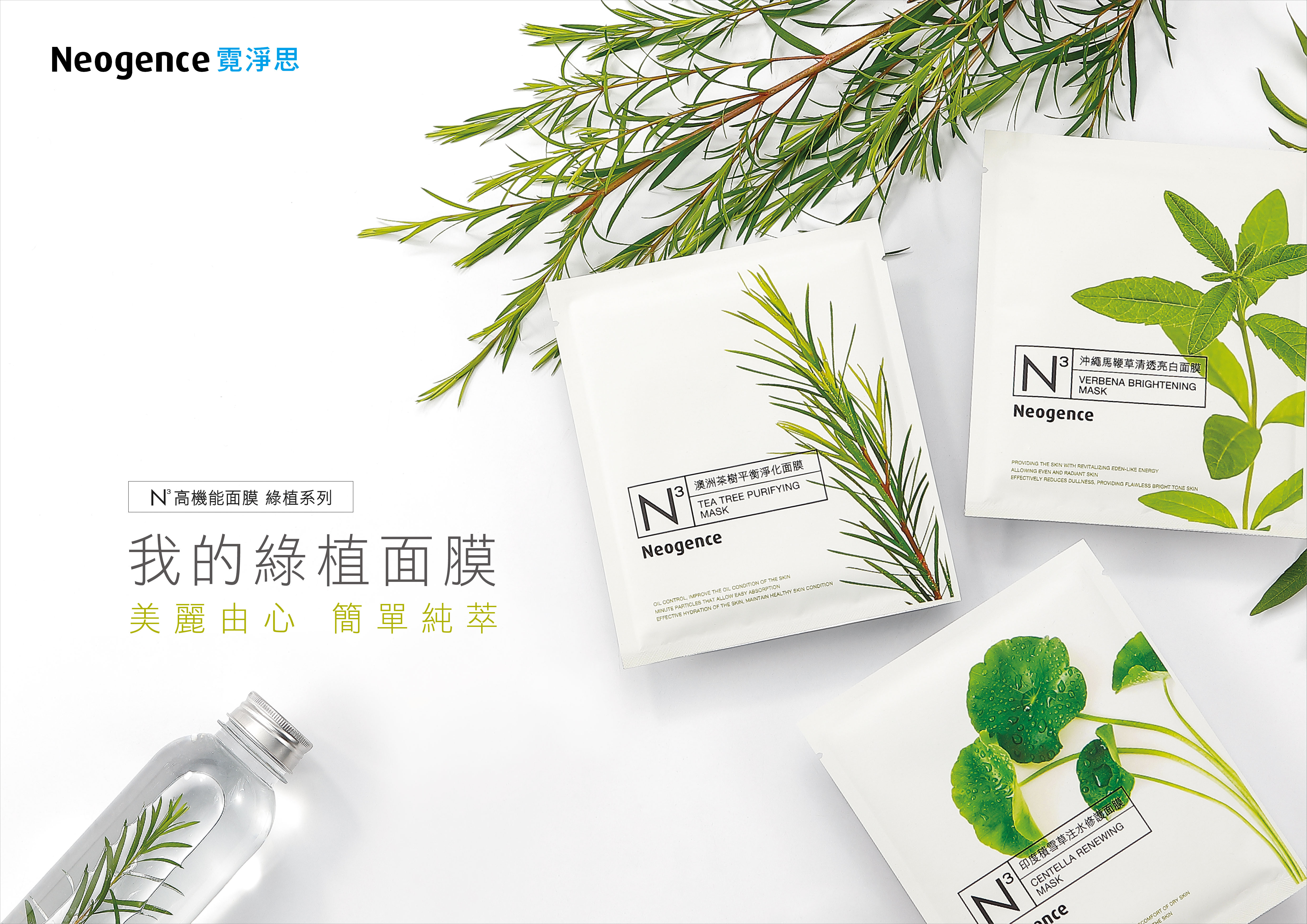 Neogence 霓淨思推出「N3 綠植系Greenery」系列面膜,特別針對不同膚況以天然馬鞭草、積雪草及茶樹精華配上各種有效成分,清新而淡雅的植萃香氛,讓肌膚和綠植來場親密對話!