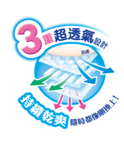 日本專利 三重超透氣設計 由內而外徹底排出濕熱氣 第一重柔點舒敏表層,凹凸間隙快速排出濕熱氣。第二重瞬間透氣通道,能立即鎖住尿液,排出濕熱氣。第三重全面乾爽呼吸孔,最外層也分秒透氣,悶濕不殘留。 全面柔護寶寶肌膚,持續乾爽隨時都像剛換上! |
