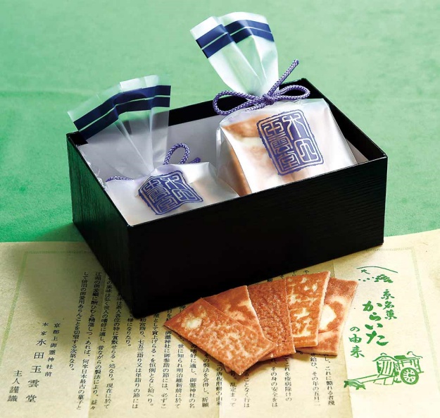相傳此除厄煎餅是八尊御靈之一的吉備真備從唐朝帶回,也是貞觀5 年(863)御靈會上供奉給神明的點心