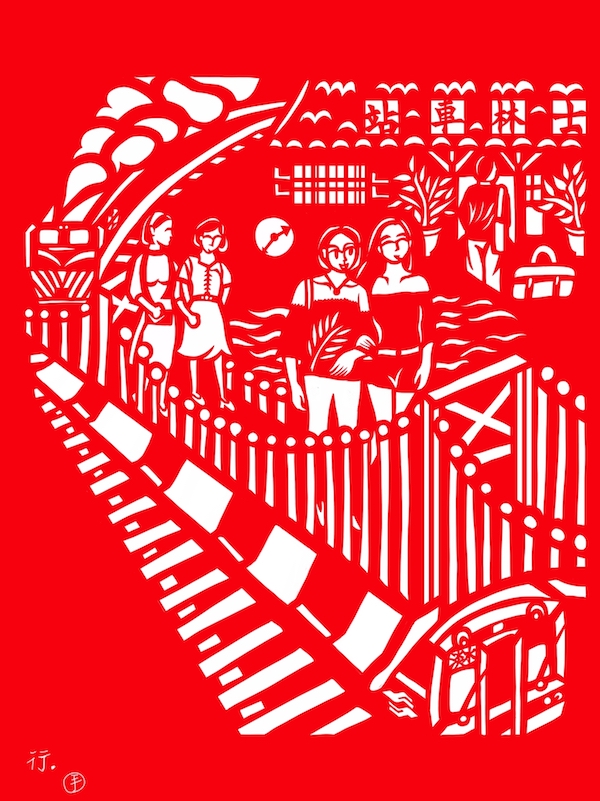 藝術家成若涵的設計裝置位於士林公民會館前的圓環,以士林過去的食、衣、住、行為素材,作品名稱為「故士」,希望透過紙雕呈現士林過往的老故事。