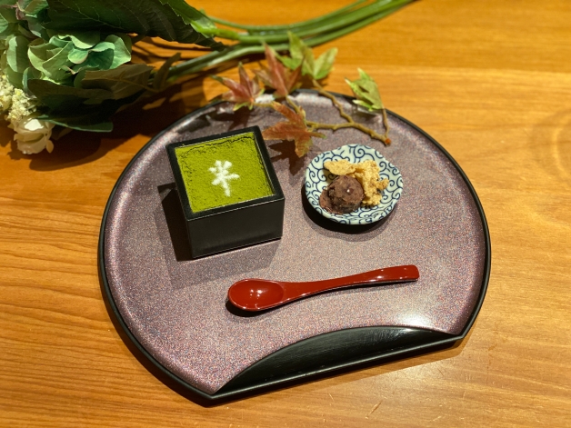 最後當然要以日本橋海鮮丼辻半自豪的甜點「宇治抹茶布丁佐金時」收尾啦!