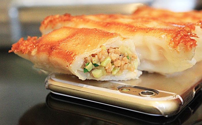 煎得金黃色的煎餃,油油亮亮的看起來好逼真!