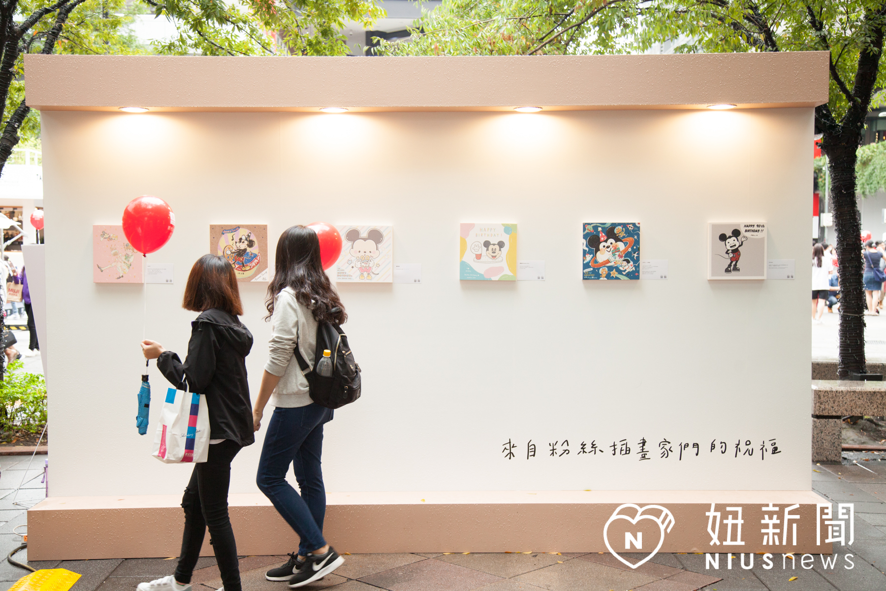 另外為了慶祝米奇90週年,妞新聞特別重現了米奇車廂讓粉絲們盡情合影,也邀請了多位插畫家來為米奇慶生~而這些作品也在香堤大道上為大家舉辦了一個溫馨的小畫展!(看到自己喜歡的插畫家的作品真的好興奮呀)在小畫廊的尾處也有一面留言牆,讓大家寫上對米奇的祝福~溫馨到不行♡