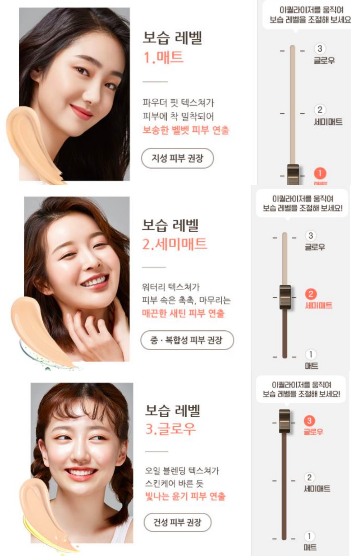 另外innisfree官網上這款氣墊粉餅同樣可按選擇妝感、遮瑕度以及粉底顏色調製粉底(步驟與粉底挑選方式一樣!)。按一按氣墊的小按鈕,就可以擠出粉底液,可控制按壓的力度,沾取所需的粉底用量,在外補妝使用,非常便利。