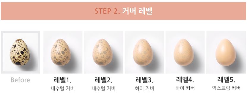 參考看看將粉底塗上蛋殼上,由1-5不同的遮瑕程度。也是要看自己的膚況來選擇哦。