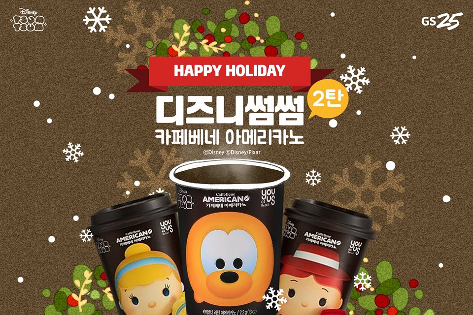 韓國必逛的便利商店GS25,隨時都會推出厲害的美食新品。記得去年底推出就曾引起轟動的迪士尼TSUM TSUM沖泡式美式咖啡杯嗎?有質感的黑色杯底,配上可愛的角色大頭超、勸、敗的啊!