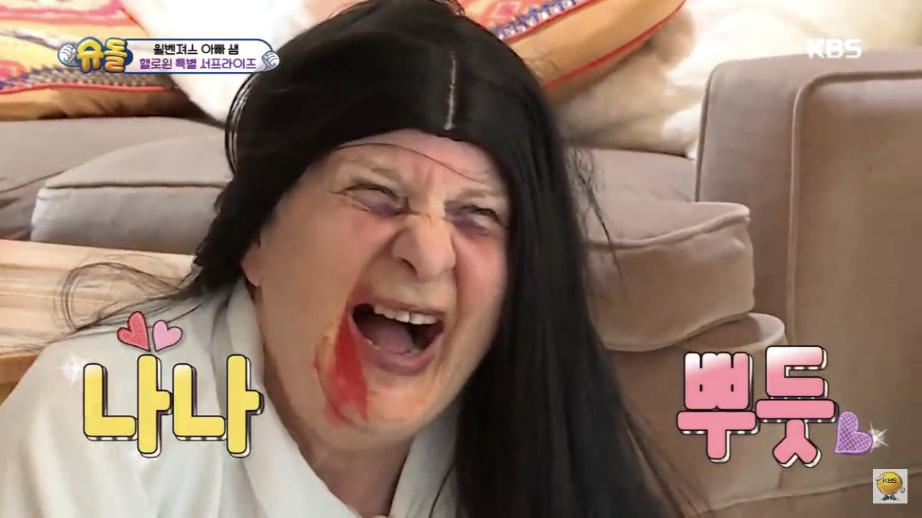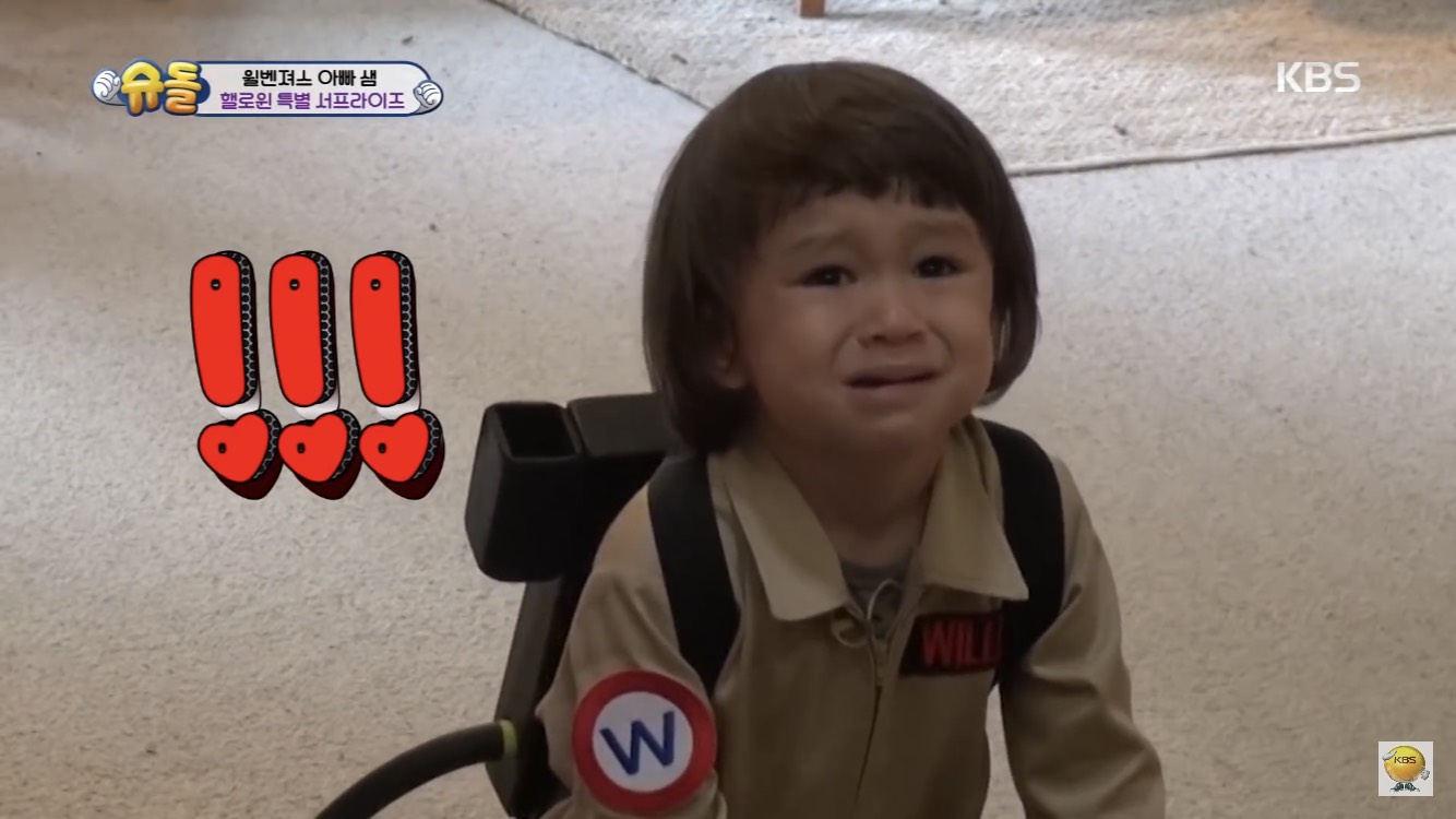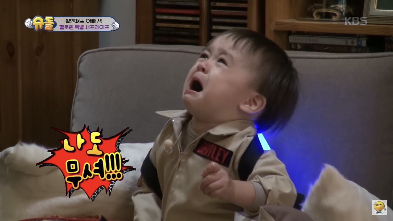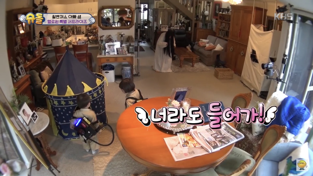 除此之外,還有「威本聯盟」的威廉及本特利兄弟檔,兩人只差一歲,從小就有著革命般的情感,雖然會吵架,但也是非常守護對方。最新一集的《超人回來了》當中,兩兄弟和父母回到澳洲奶奶家,那時剛好遇上萬聖節,於是活潑的奶奶就想惡整孫子(這奶奶的惡趣味也真是XD),扮成了鬼魂,妝髮到演技都很出色的奶奶,一出場就把威廉嚇哭說:「好可怕」,而看哥哥一哭弟弟本特利也跟著哭了。