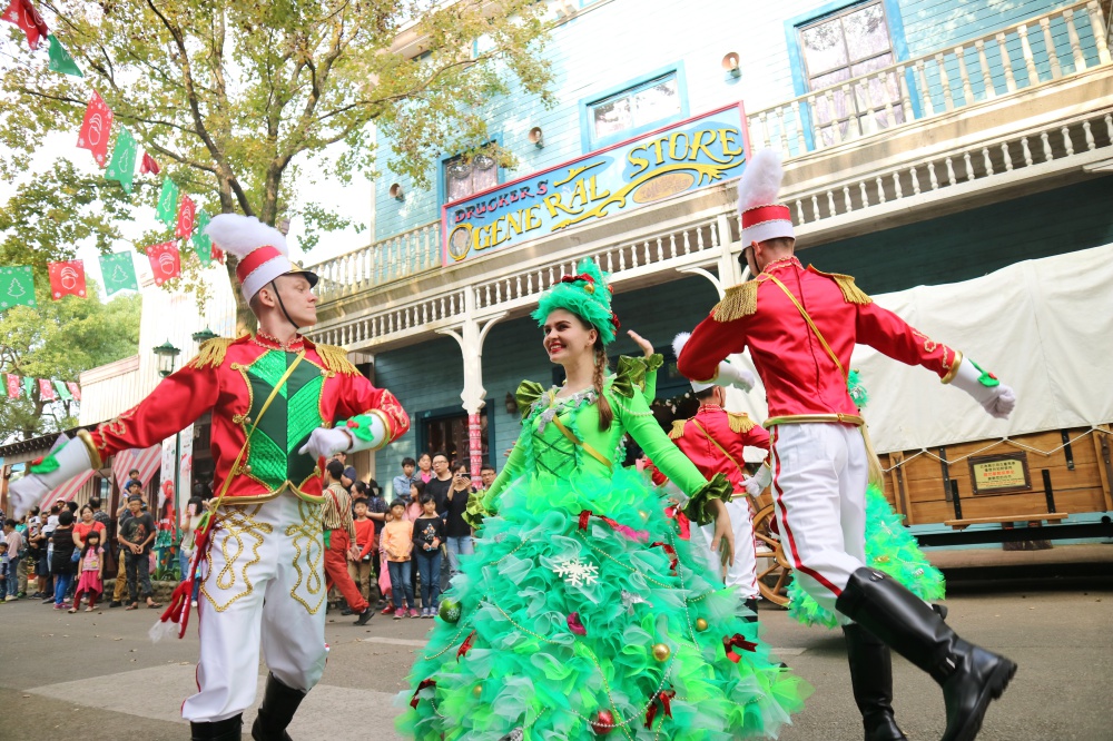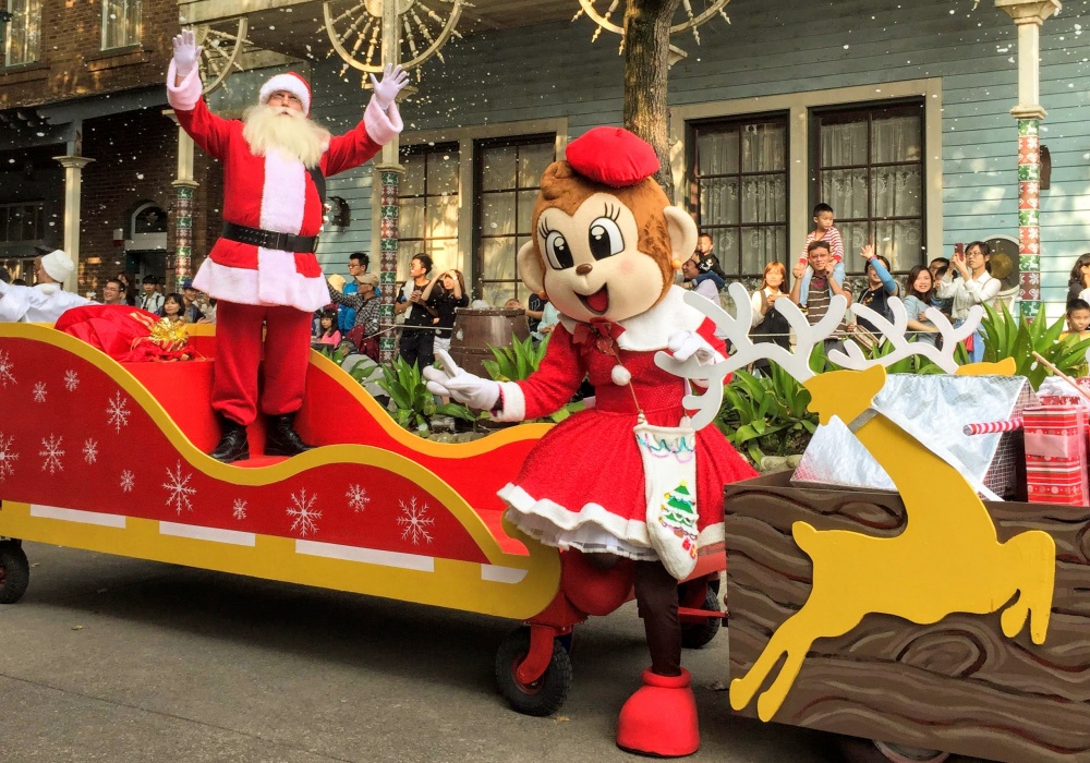 除了拍攝美好佈置,別忘了牢記遊行時間,有趣到令你不再羨慕其他樂園的行程!經典的吉祥物哈比與哈妮換上耶誕裝扮,與大家度過美好時光~歡樂的音樂加上熱鬧氣氛,不管是大人還是小孩都享受了一場華麗且精彩的演出。