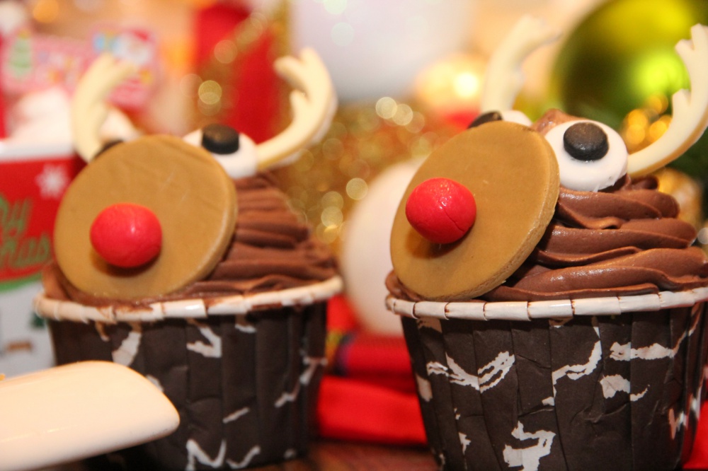可愛的馴鹿造型杯子蛋糕,捨不得吃掉它。