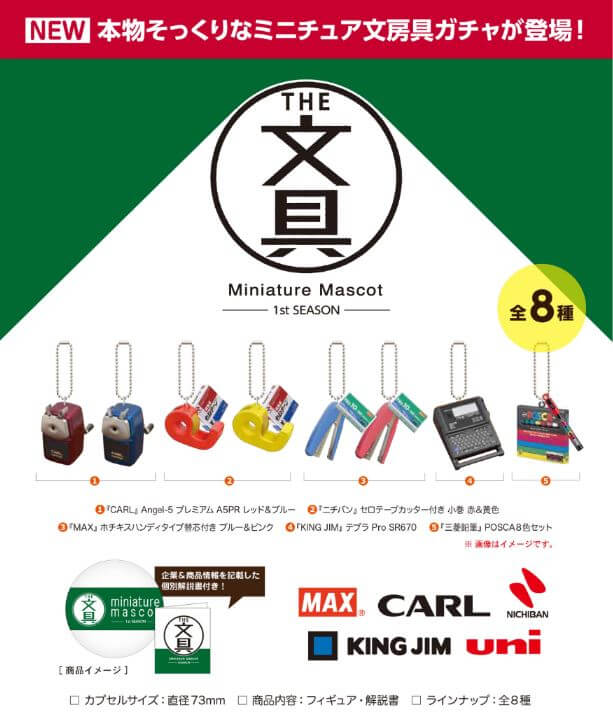 除了學校書法課扭蛋,另一個扭蛋公司Jdream也推出過迷你文具扭蛋。釘書機+訂書針、削鉛筆機、膠帶台每個都超可愛~讓文具控手癢想買!