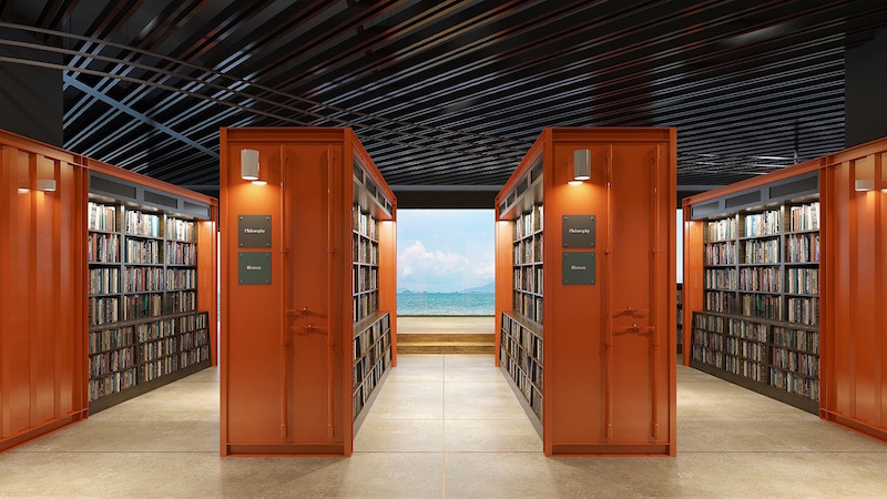 「誠品生活台中三井店」以「海線文化聚集平台」為定位,除了有15座霸氣的「貨櫃書架」外,還特地保留了25公尺寬的落地大窗,讓大家能盡情飽覽海景。此外這裡最大特色,還有搜集了全台誠品最齊全的海洋書籍,以及海線城市特有的宮廟文化。