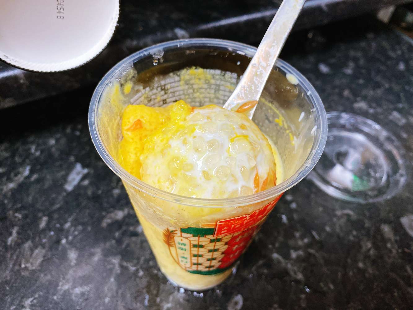 新登場的「楊枝甘露酷繽沙」以愛文芒果為基底,搭配紅西柚果粒與Q彈西米露,加入以椰奶製成的冰沙,口感香濃又多層次。