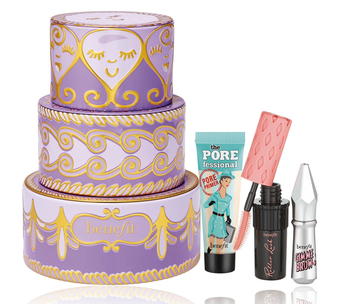 紫色蛋糕盒是姊妹中最可愛的老么,專門設計給喜歡蒐集迷你產品的妳!一盒含Benefit最暢銷的三個小不點,不管是旅遊還是外出隨身攜帶,都可以給妳「眉」好妝容!