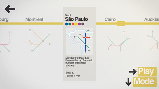 這款經營規劃手遊的背景是模擬世界各大城市的地鐵或捷運路線圖,考驗的是玩家的規劃技能。在地鐵的新站被開啟時,玩家必須重新規劃一條「最佳路線」,讓地鐵保持高效率的營運。共有11座真實城市等著玩家來挑戰,雖然玩起來燒腦,但挑戰成功會超級有成就感!