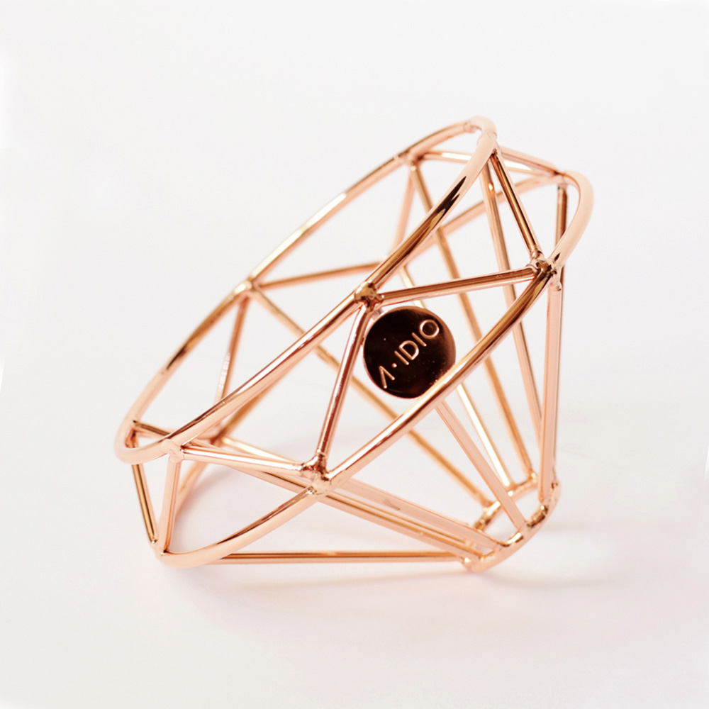 當有親朋好友來家中作客時,拿出這款「A-IDIO鑽石型咖啡濾杯」,率性的放上濾紙,帶著濃厚香氣的咖啡從鑽石底部滴下時,就能輕易吸引眾人的目光。這款濾杯是由曾獲獎的設計師所設計,整體造型上相當具有奢華感,整體運用玫瑰金色調打造,並且利用鑽石造型美不勝收的切面做出獨創的雙層支架,便能使用在各種款式的咖啡壺或高杯,不止吸睛還很實用。