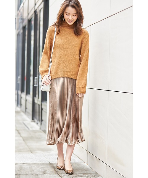 焦糖棕毛衣配上富含光澤的金絲絨百褶裙,走在路上整個時尚的街拍感都散發出來啦!