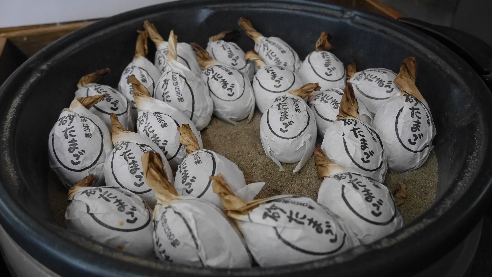 再來是鳥取縣的知名伴手禮「砂蛋」,使用鳥取地雞的「天美卵」,再將其包覆放入砂中高溫蒸烤,有點類似溫泉蛋的製法,嚐起來Q彈且香氣十足,最適合解饞食用!(比起其它零嘴熱量也比較不高)
