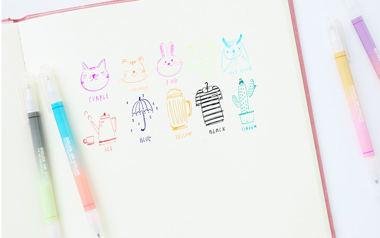 這款原子筆採用雙頭設計,五隻筆總共有十種顏色,除了寫字之外,也可以用它們畫出繽紛的插畫,讓你更輕鬆把手帳佈置得漂漂亮亮!以上就是妞編輯私推的5款文具,讓我們一起往韓妞的路上前進吧!(安妞~)
