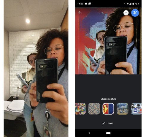 《Google Arts & Culture》App還有超好玩的藝術轉印 (Arts Tranfer) 功能,就算沒有去到博物館現場,也能將圖畫P進自拍裡喔!不管是安迪沃荷還是梵谷,手機簡單一按就可以「身歷其境」~