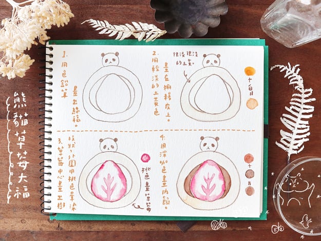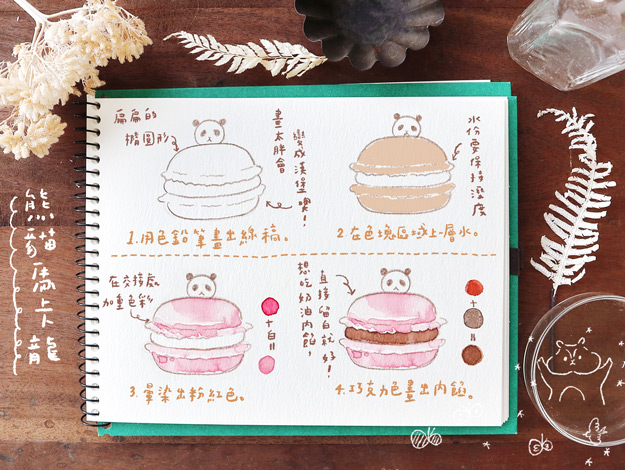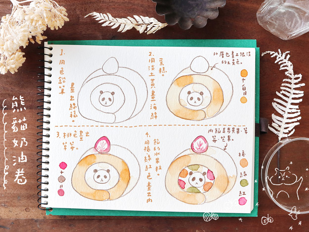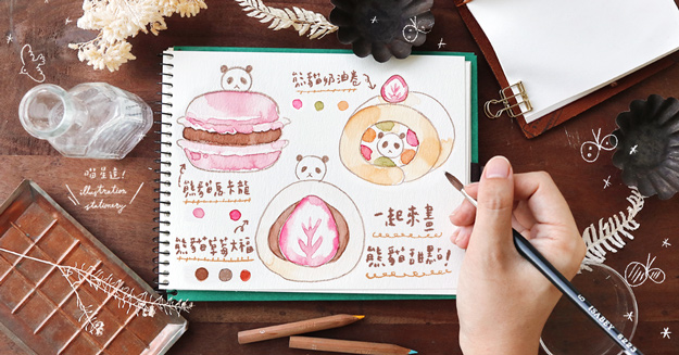今天要帶大家來畫萌萌的熊貓甜點!每次品嘗甜點都有一種幸福感,看著繽紛的甜點不自覺的心情愉悅~試試看用水彩和色鉛筆將這份快樂保留下來,再加上可愛又簡單的熊貓圖案,香甜的熊貓甜點就誕生啦!跟著下面的步驟一起來畫看看~