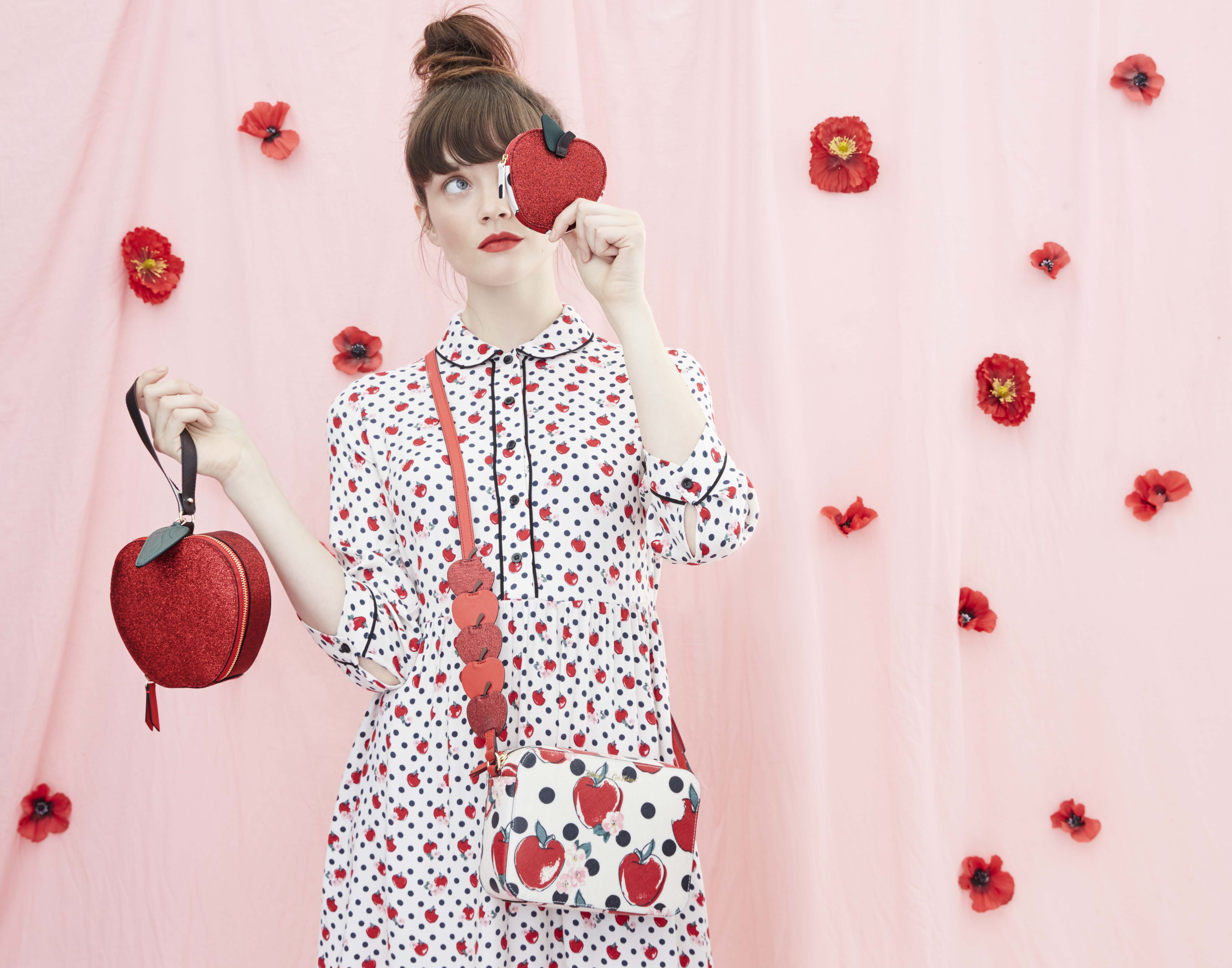 聯名怎麼能少了讓白雪公主倒下沈睡的關鍵「毒蘋果」呢?這些毒蘋果可是由Disney動畫工作室中的插畫設計師特地為這系列手繪打造的,再與Cath Kidston的經典元素「原點」完美結合,鮮艷紅色系的圍裙、包款、手套等存在感超高啊~