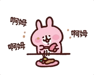 吃東西也是快到不行,宛如蝗蟲過境。肚子餓時或趕著吃飯時,就用這張瘋狂掃食物的兔兔來表達吧!(很好奇這樣的吃法不會噎到嗎XD?)