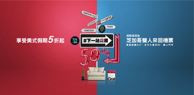 來自美國芝加哥的Crate and Barrel,向來以最道地的美式生活情境與混搭佈置技巧,展現極具美式風格的經典家居生活,為了讓消費者輕鬆入手品牌經典的家具家飾,把日常居家空間布置成嚮往已久的美國度假城市,即日起至7月24日止,除了提供實體與線上門市商品,包含戶外家具、春夏商品5折、精選商品7折、正價商品8折的優惠外,單筆消費滿$3,000元的消費者,還可參加「台北-芝加哥 雙人來回機票週週送」的活動,送您前往品牌創始城市,實現專屬於您的「#下一站美國」經典假期。