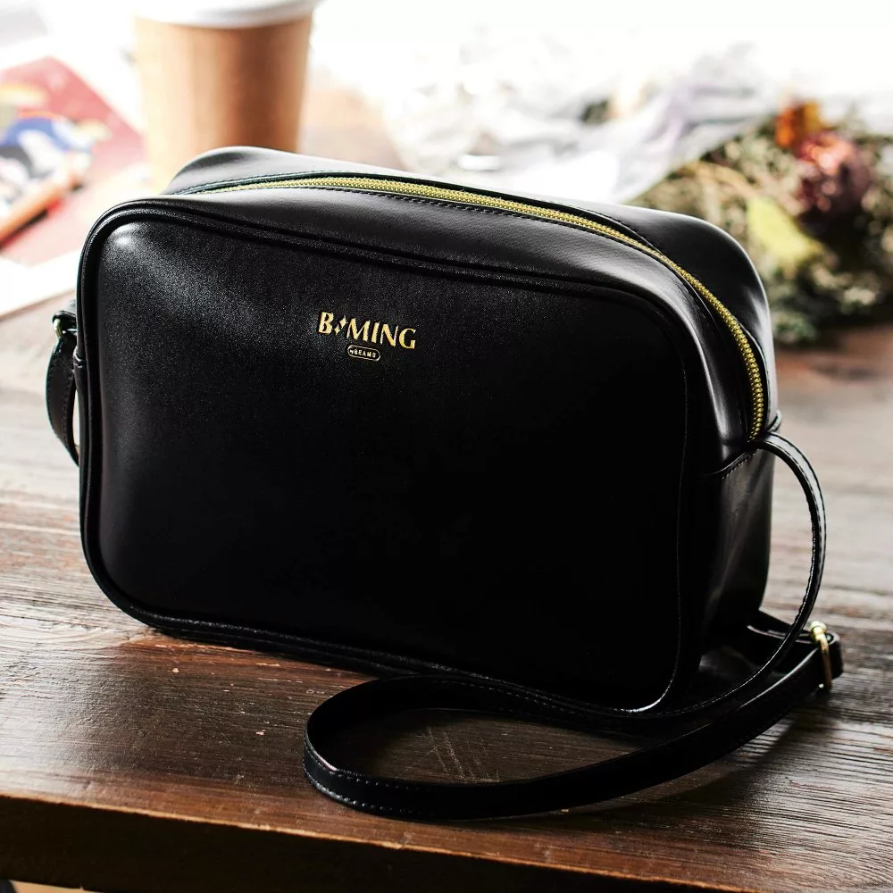 《steady》1月號的附錄是「MING by BEAMS側背包」,皮革具有黑色的光澤感,加上燙金字樣超顯質感,而內裡則是時尚的豹紋風。簡單的方形輪廓連長夾都放得下,而且還能調整揹帶長度,當作上班包也很合適,不會過於花俏且大小剛好!