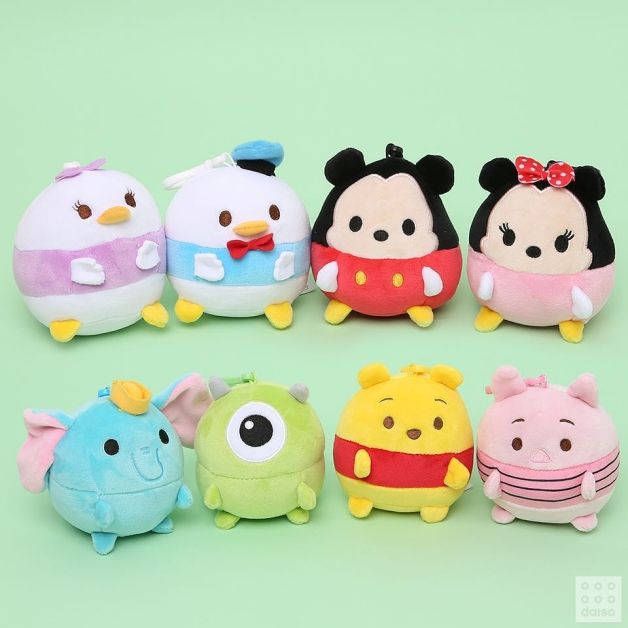 迪士尼tsum tsum系列,每隻都變成超級矮胖圓滾滾尺寸,手腳都超迷你,胖胖的身體,大大的眼睛,不收他們都不行,這次可不只有米奇米妮、維尼小豬、唐老鴨黛西,就連小飛象和大眼仔麥克‧華斯基都有啊~而且還有小釣鉤環,讓妞妞們想掛哪都可以,價格為3000韓幣!