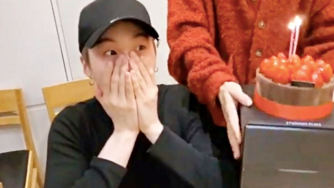 當天的溫馨慶生畫面也曝光,防彈少年團的官方SNS上一口氣上傳了兩支影片,一支可以看到Jimin把準備好的生日蛋糕端出、大家開始唱起生日快樂歌,主角SUGA裝出一臉驚喜臉超酷的吹熄蠟燭,貼文寫上:「因為玧其哥很可愛,所以是2歲(生日)」(好的,壽星的版面就到這裡XD)