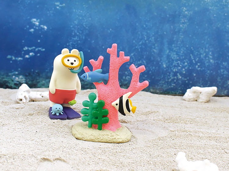 擺飾公仔還有一個很可愛的潛水夫白熊,腳上還黏了藍色章魚哈哈哈!是說粉色珊瑚礁擺飾也很中少女心欸,少女最無法抗拒粉色又可愛的東西了>////<~真心覺得這次的龍宮周邊超級療癒,在家裡或辦公室騰出一個小空間擺上它們,每天看到心情都會很好呢!