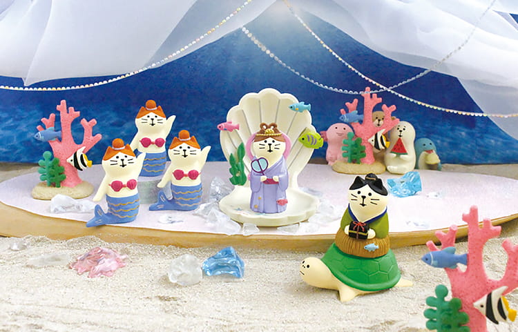 大家有聽過日本經典童話《浦島太郎》的故事嗎?善良的浦島太郎因為救了一隻被欺負的海龜,受到龍宮公主的邀請來到美麗的海底龍宮接受款待⋯⋯這次,Decole所推出的新品擺飾將帶你重溫這個經典故事,可愛的「浦島太郎喵」與美麗的「龍宮公主」亮、相、啦!趕快跟著妞編輯到Decole的海底龍宮一探究竟!