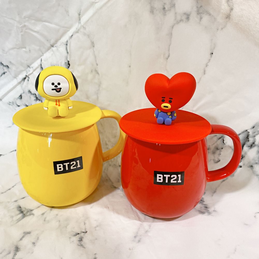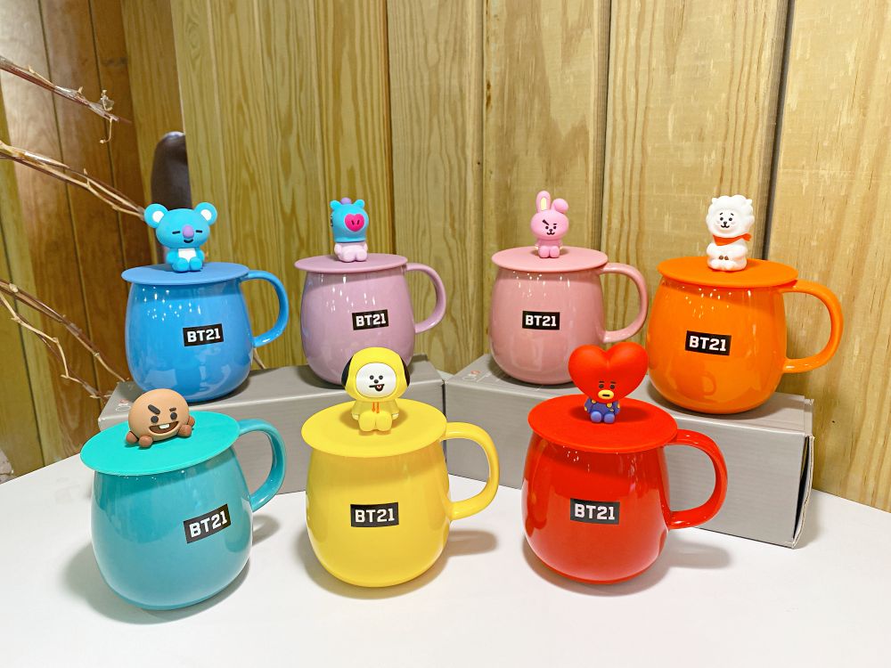 首先介紹BT21公仔杯蓋馬克杯,TATA、Chimmy等七位角色一次到齊!馬克杯以角色的代表色為顏色,例如TATA款為紅色、KOYA款為藍色等。馬克杯還隨附萌萌的立體公仔杯蓋,整體可愛度爆表。杯蓋適用各種馬克杯,捨不得用這款杯子,想把杯蓋用在別處也OK哦~
