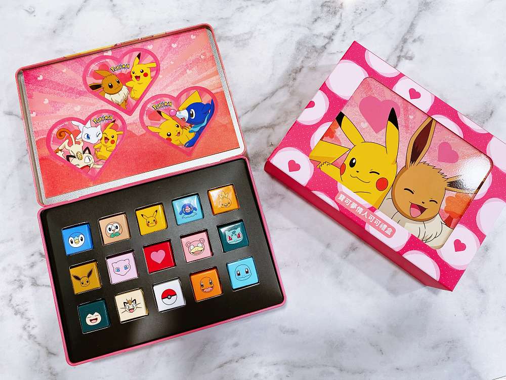 皮卡丘、伊布、火稚雞等可愛的寶可夢則化身成巧克力登場,15顆巧克力以寶可夢、精靈球與愛心為包裝,禮盒隨附心型貼紙,巧克力吃完別忘了將盒子留下收藏,讓皮卡丘與伊布保管你的個人小物。