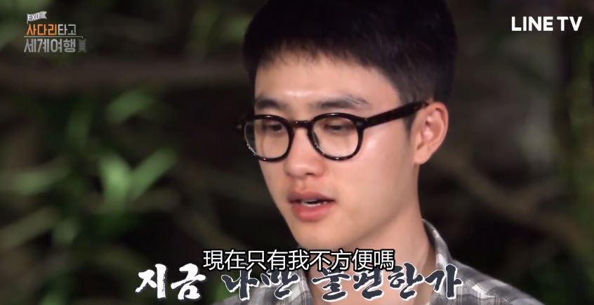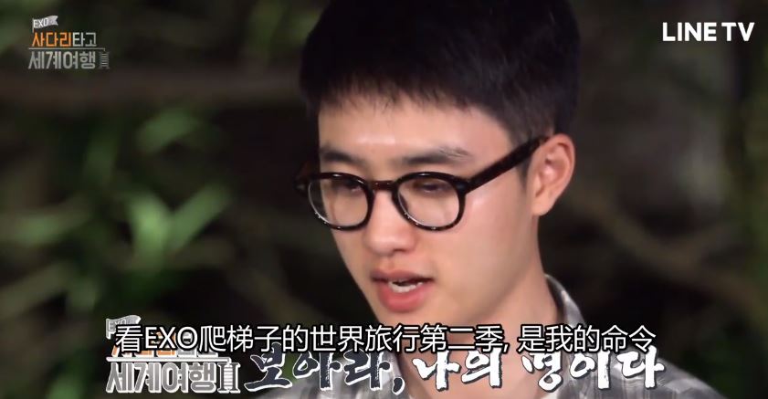 拍攝期間《百日的郎君》正在熱播,主演的D.O.都敬秀也還沒放下它的「世子病」,頻頻模仿劇中台詞「現在只有我不方便嗎」(只有我覺得不自在嗎)、「是我的命令」逗趣表現笑翻眾人!不過世子大人命令大家一定要看《EXO的爬梯子世界旅行第二季,那就只好看了吧!(笑死)