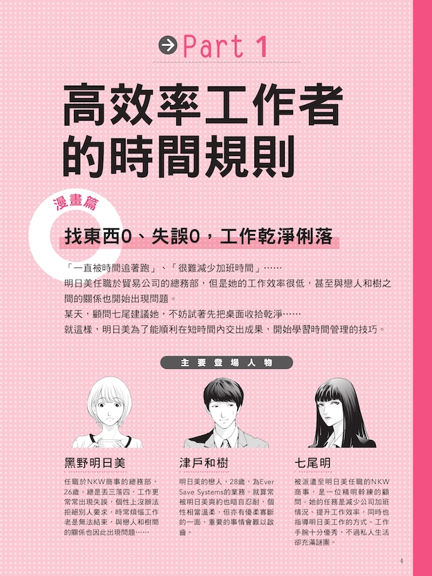 日本女性雜誌「日經WOMAN」新書 《我的時間都去哪了?高效率完成工作、享受人生!》帶你檢測生活中害你效率低落的壞習慣,並透過活潑易懂的少女漫畫教妳各種簡單實用省時訣竅,從加班族畢業不是夢啊!