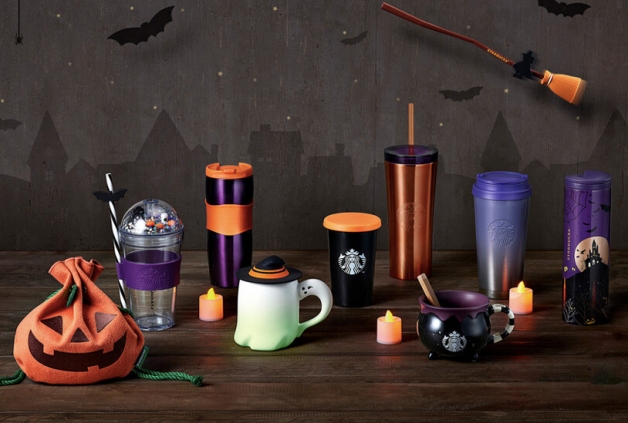 杯款的部分有九款,分別為女巫釀造馬克杯、鬼魂發光馬克杯(遇熱會變亮)、萬聖節造型雙層玻璃杯、南瓜橘+詭異紫隨行杯、詭譎黑隨行杯、漸層紫隨行杯、萬聖節造型隨行杯、不鏽鋼水冷杯、橘紫保溫瓶等,還有萬聖節女巫騎掃帚攪拌棒、南瓜造型零錢包,以及cos成女巫和鬼魂的星巴克小熊鑰匙圈吊飾,每款都很應景!