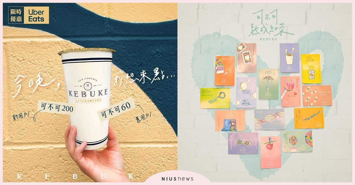 「今晚,我想來點… 可不可的白玉歐蕾去冰」,Uber Eats 在今年初除了推出知名雙代言人廣告外,另有訂購可不可熟成紅茶享限時優惠折抵活動。舊用戶輸入序號[ 可不可60 ],02/14 (五) 起至 02/23 (日) 止,訂購可不可滿 299 元享 60 元優惠折抵。新用戶輸入序號[ 可不可200 ],02/14 (五) 起至 06/30 (二) 止輸入後 7 日內,訂購可不可立即享 2 次 100 元優惠折抵。