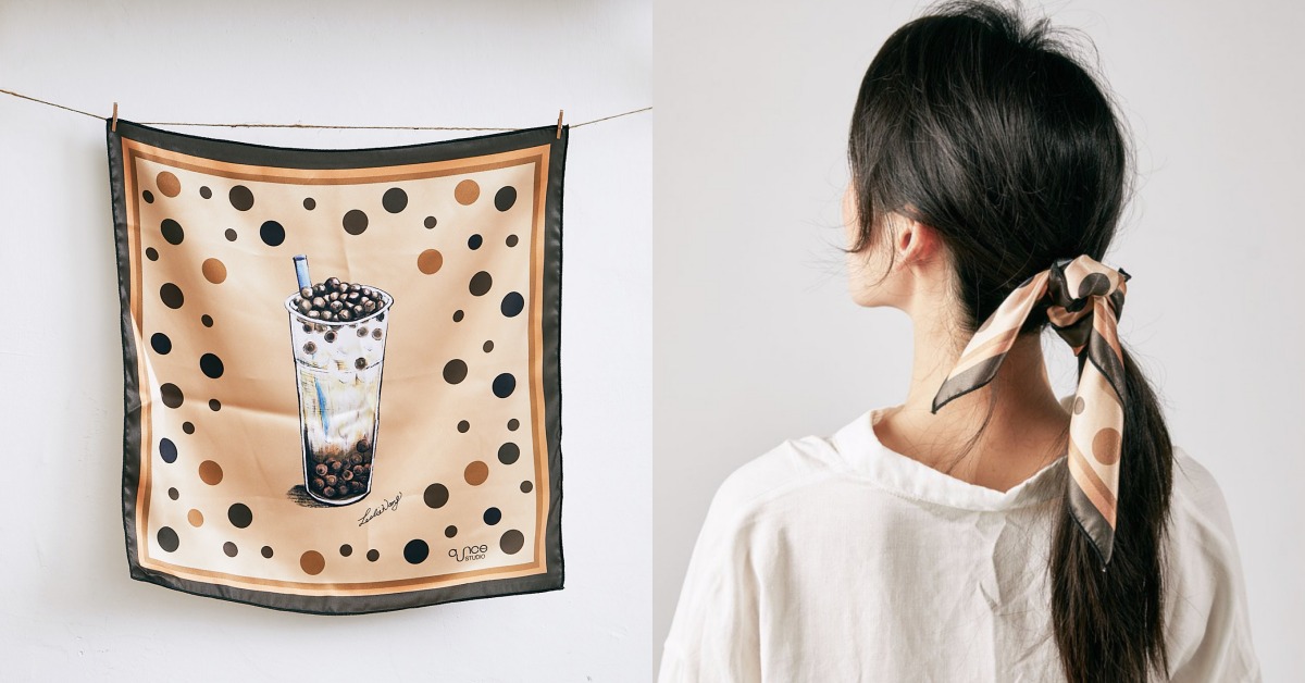 奶茶控的妞妞把手舉起來!這次我們不只要把珍奶拿手上,還要掛在牆上、綁在頭髮上~這款珍珠奶茶小方巾,45*45公分的大小除了可以當作壁畫裝飾之外,大地色的外型也非常適合當作頭巾、領巾妝點一天的穿搭,讓台灣最招牌的飲品陪伴在妞妞們的身邊!